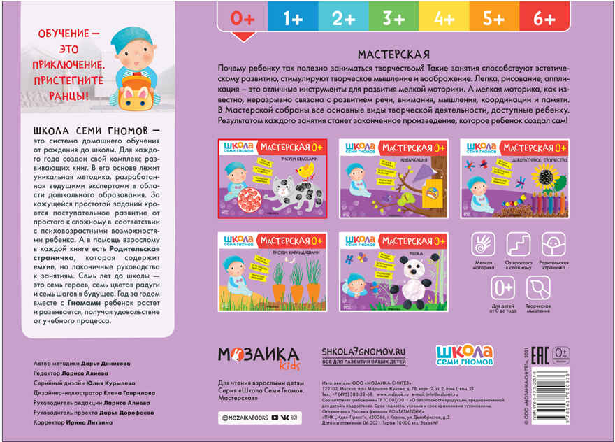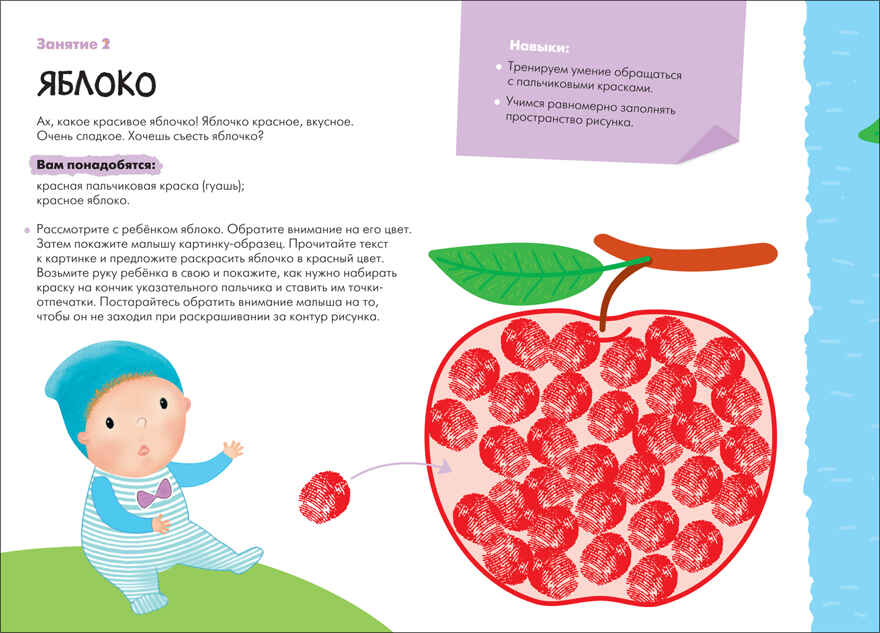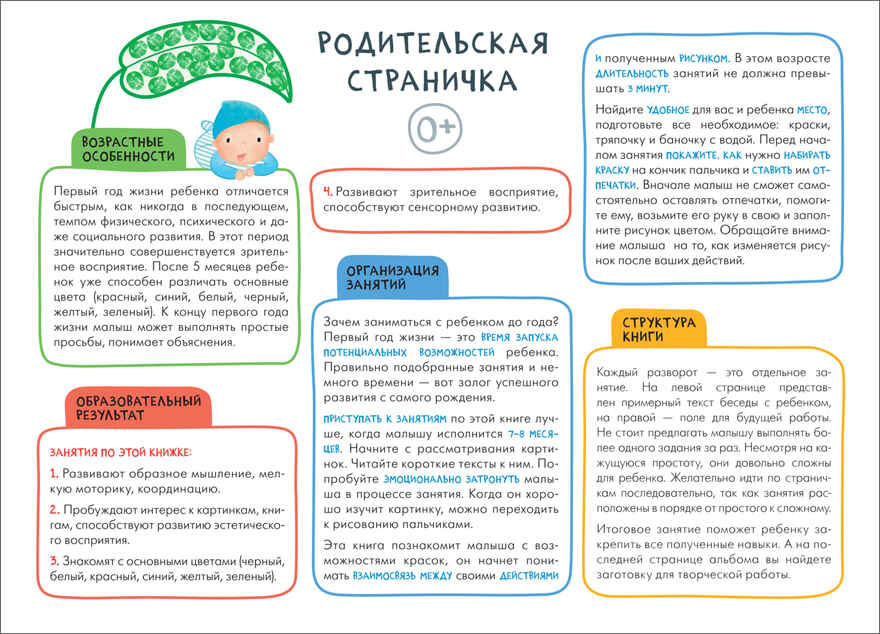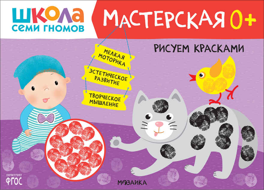 Книга «Рисуем красками 0+» из серии «Школа Семи Гномов. Мастерская» — это альбом для занятий рисованием с ребенком от рождения до года. Занятия на близкие и понятные ребенку темы расположены по мере усложнения: поступательно переходя от освоения простых навыков к более сложным заданиям, ребенок научится рисовать с помощью пальчиков и создавать красочные рисунки.