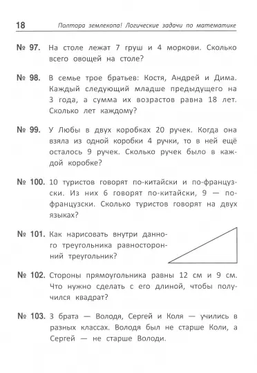 В предлагаемом пособии собраны различные типы логических задач, соответствующие возрастным особенностям учащихся младшего и среднего школьного возраста.